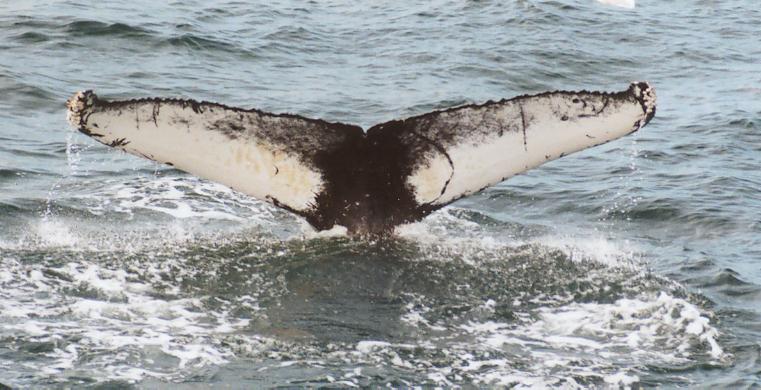 It’s been a month since I have been on the water. When I did the dock talk, I thought we were going North, like we had every day the past few weeks I thought. Nope, we were headed South to Stellwagen to see a few humpbacks. We watched Owl and Lace for a few surfacings. HUGE whales–especially Lace. She has to be pregnant! Then eagle eye Nancy found a big splash in the distance, so we went over to it. Guess who? NILE!!!! She continued to breach and flipper slap for a half hour. What a treat to get to see Nile today!!!! For those who don’t know, I am starting a new business doing school presentations. I had an inflatable life-size model of a humpback whale made that I am taking into schools to share with students. The whale I had made is Nile!!! Today was a great day!!!
